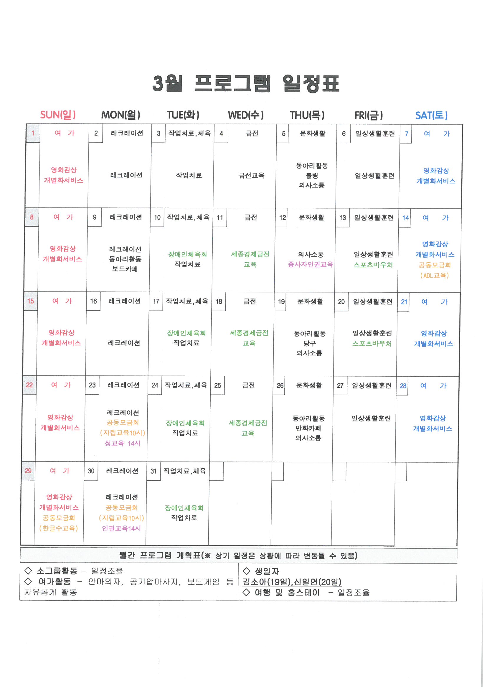 2026³â 3¿ù ÇÁ·Î±×·¥ ÀÏÁ¤Ç¥