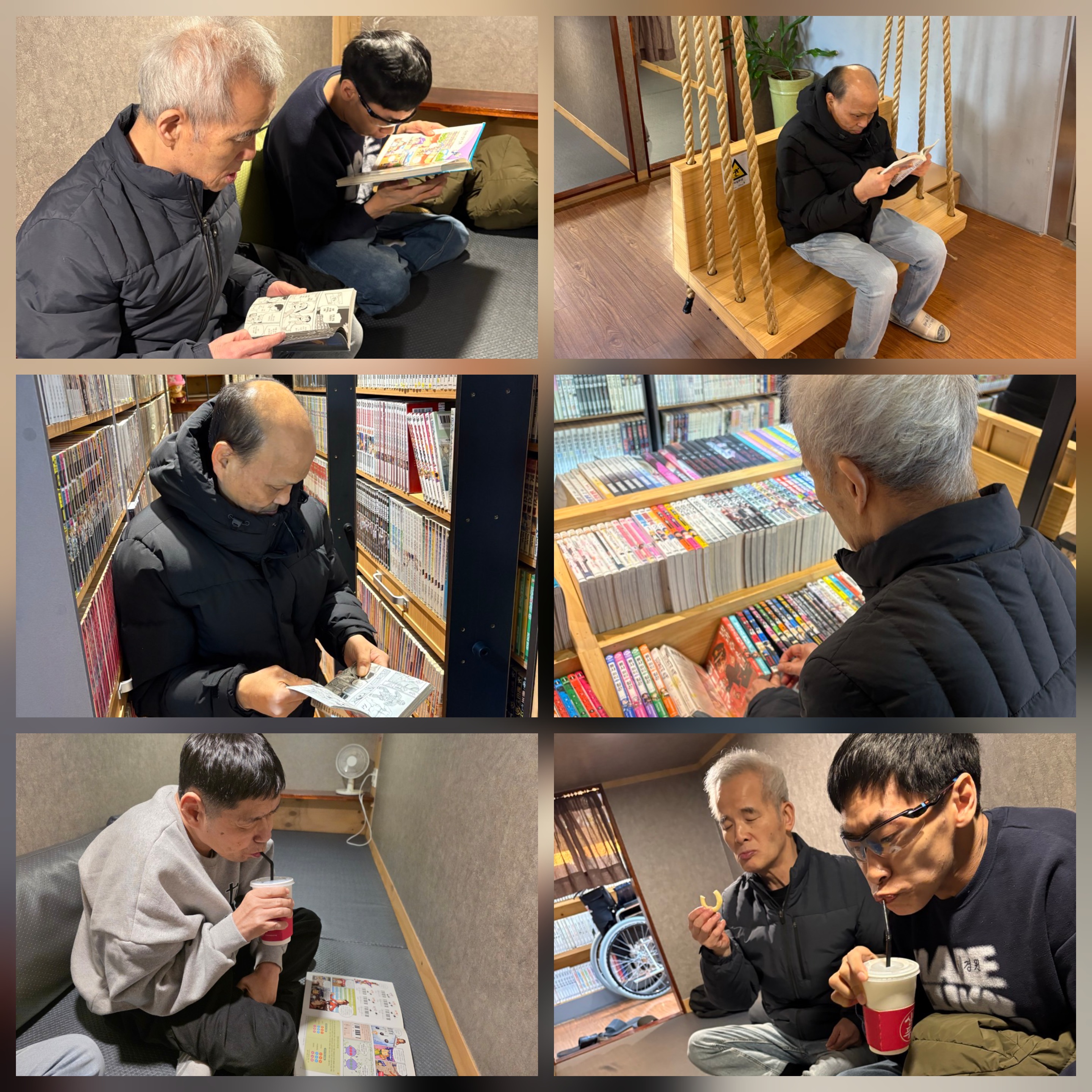 Ã¥¿¡ °ü½ÉÀÌ ¸¹Àº ºÐµé°ú ÇÔ²² ¸¸ÈÄ«Æä¸¦ ´Ù³à¿Ô½À´Ï´Ù. ±Û¾¾º¸´Ù´Â ±×¸²À» º¸´Â °ÍÀ» ÁÁ¾ÆÇϽñ⿡ Âü¿©Àںе鵵 ¸¸ÈÄ«Æä¸¦ ´õ ÁÁ¾ÆÇÕ´Ï´Ù. À½·á¿Í ÇÔ²² Ã¥ÀåÀ» ³Ñ±â¸é¼ Ã¥µéÀ» »ìÆìº¾´Ï´Ù.